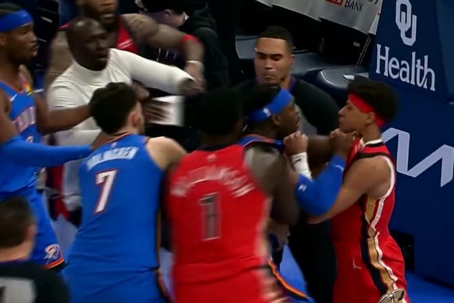 比賽中最后一攻時,費爾斯上籃與雷霆悍將多爾特有身體糾纏,多爾特推搡費爾斯后,兩人開始爆發沖突,互相揪著對方的衣領,引發雙方球員大規模沖突。