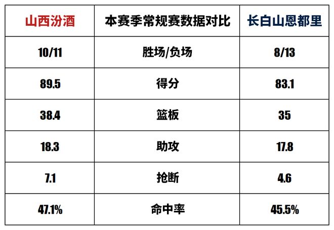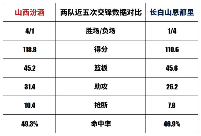 山西汾酒與長(zhǎng)白山恩都里歷史上一共交手42次,山西汾酒22勝20負(fù)。上賽季兩隊(duì)交手2次,山西汾酒1勝1負(fù)。