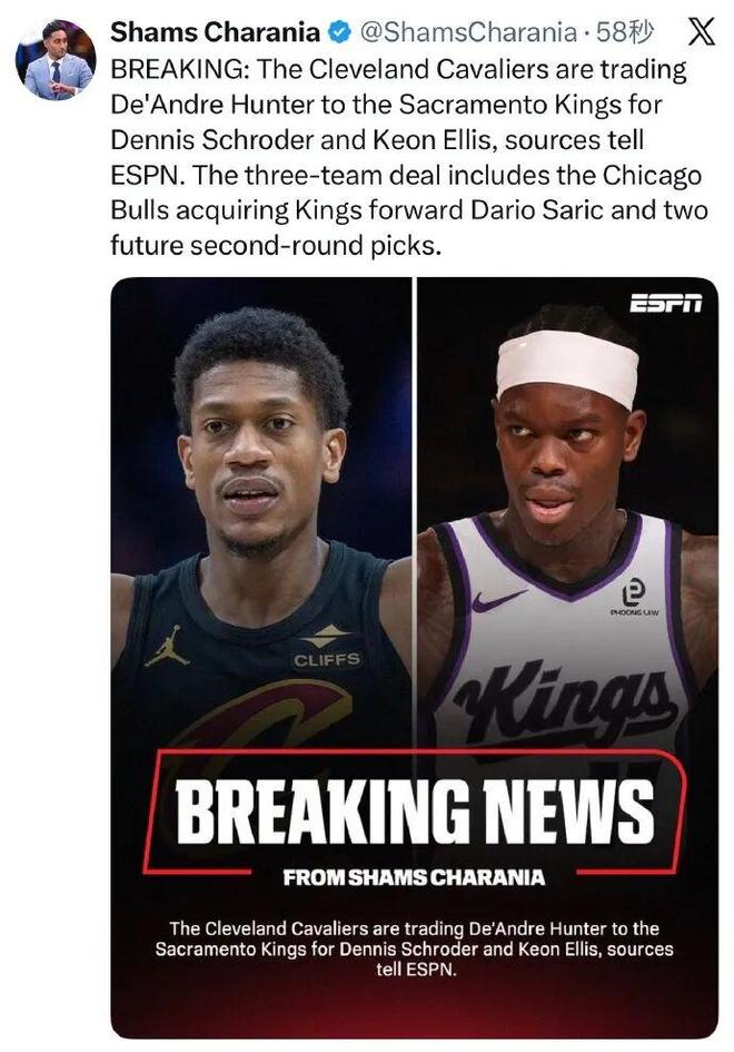 據(jù)他報道, 騎士與國王完成交易,騎士將德安德烈-亨特送至國王,換回施羅德與埃利斯。