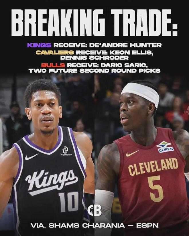 北京時間2月1日中午12點,據NBA名記Shams報道,騎士、國王和公牛達成一筆三方交易:騎士隊將德安德烈-亨特交易至薩克拉門托國王隊,換來丹尼斯-施羅德和基翁-埃利斯。此外,國王將薩里奇和2個次輪簽送到芝加哥公牛隊。