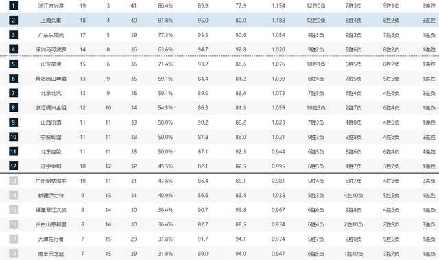 CBA排名一夜大變!上海沖第1,北京廣東全部翻車,7隊哄搶第12名