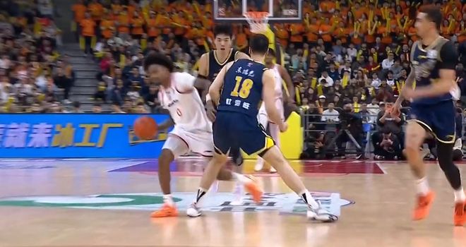 首節比賽打到4分鐘左右,古德溫持球推進遭到了廣東小將陳家政的緊逼防守犯規。