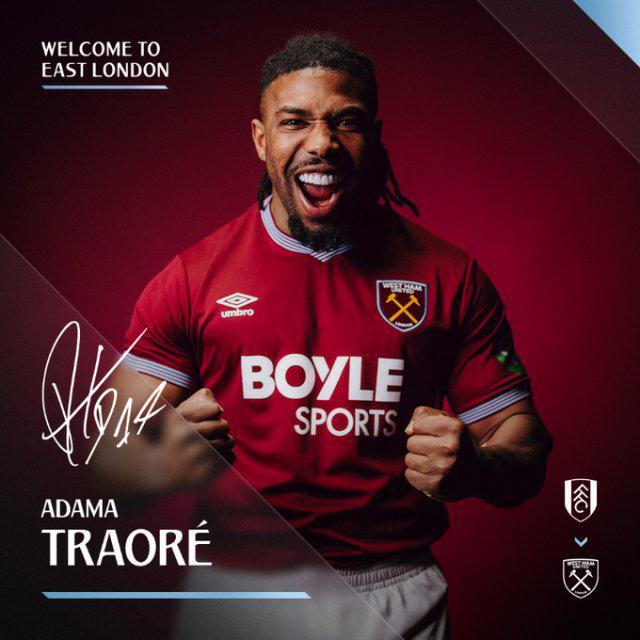 官方:西漢姆200萬簽阿達馬·特勞雷