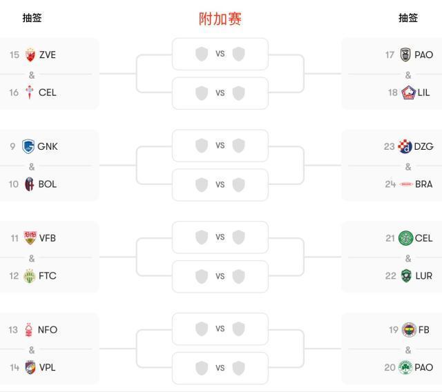 附加賽抽簽將于北京時間1月30日(本周五)20點進行,兩回合比賽則在3周之后:首回合2月19日,次回合2月26日(當地時間)。