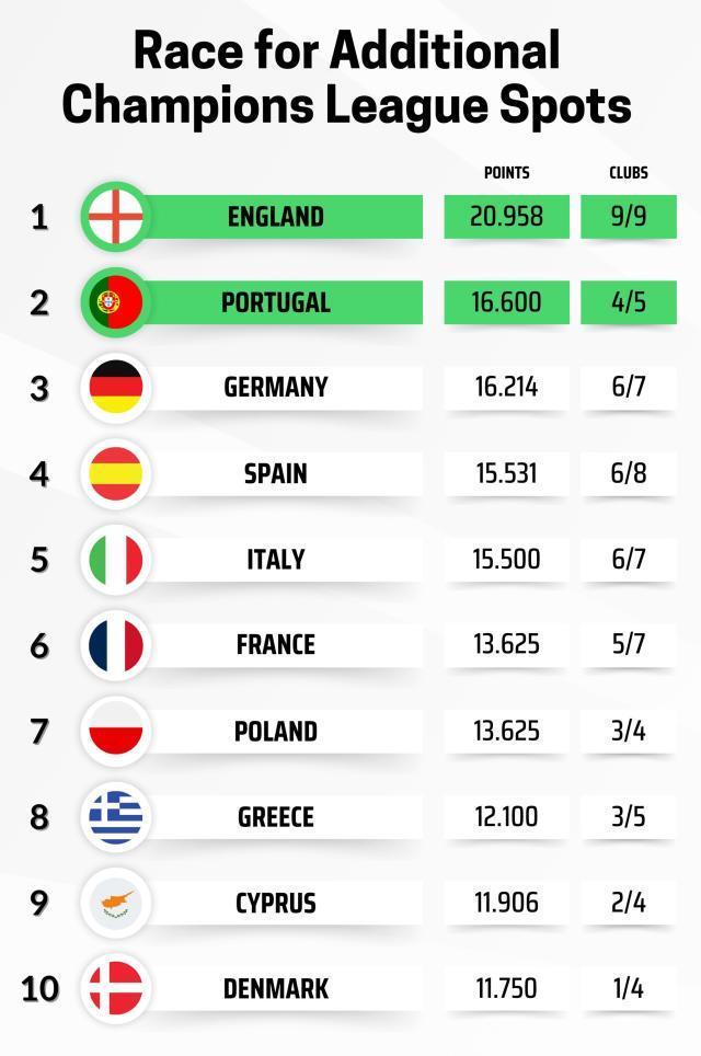 事實上,葡超本季迄今在歐戰表現突出,在參加歐冠、歐聯、歐協三大杯的5支球隊中,僅有圣克拉拉體育在歐協杯這個是附加賽“陣亡”,兩支歐冠球隊和歐聯球隊均以前8名直接晉級淘汰賽。總體戰績上,葡超本季迄今拿到16.6個歐戰積分,僅次于目前9隊全部存活的英超,暫時反超德甲。