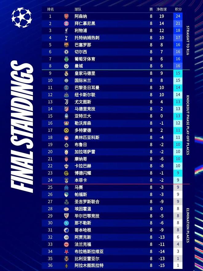 盡管取得了這場勝利,但國際米蘭在聯賽階段的積分仍不足以讓他們直接晉級下一輪,根據歐足聯本賽季的新賽制,他們需要參加后續的附加賽來爭奪淘汰賽席位。